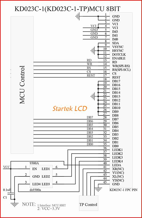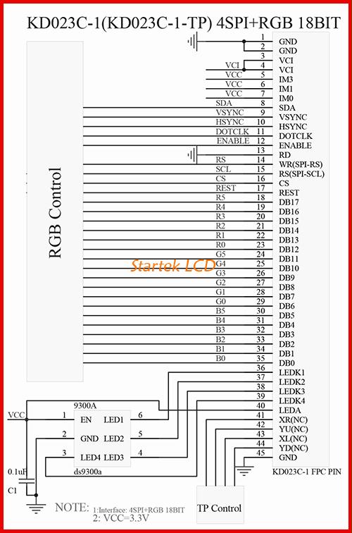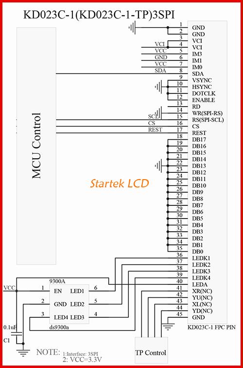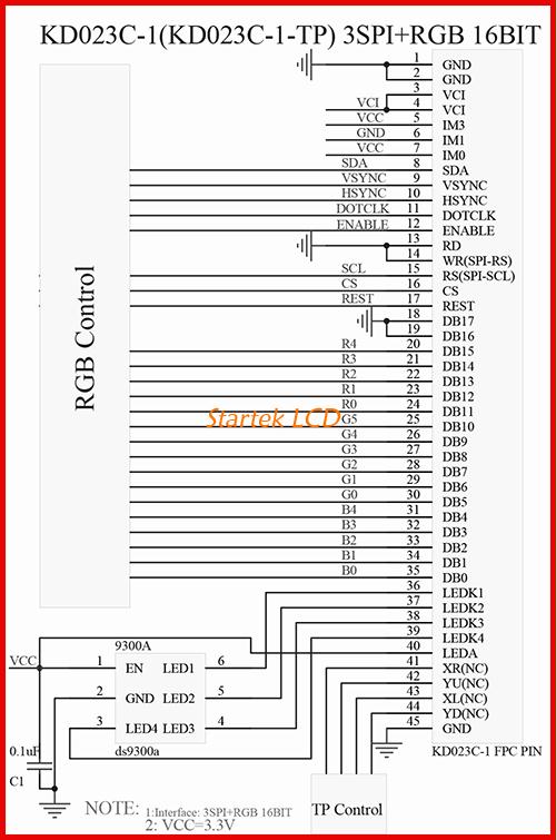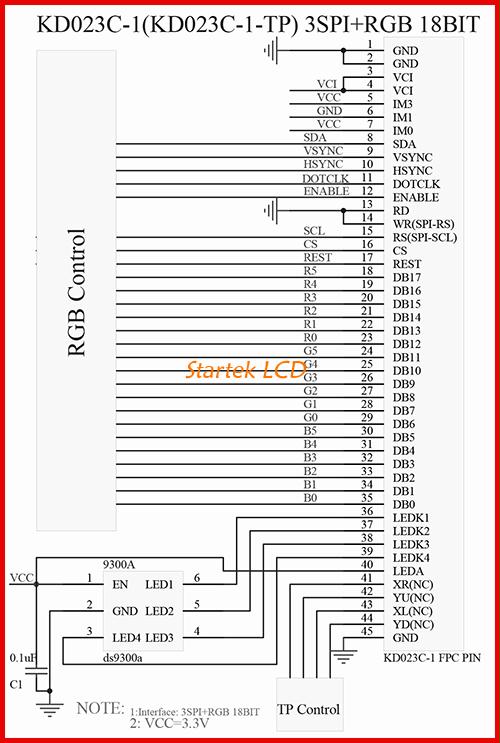 图片9:3线SPI18位RGB接口接线图