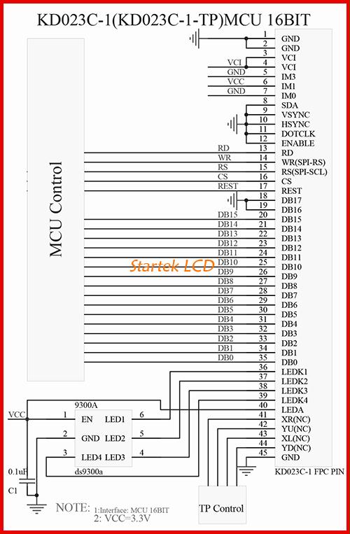 图片8:3线SPI16位RGB接口接线图