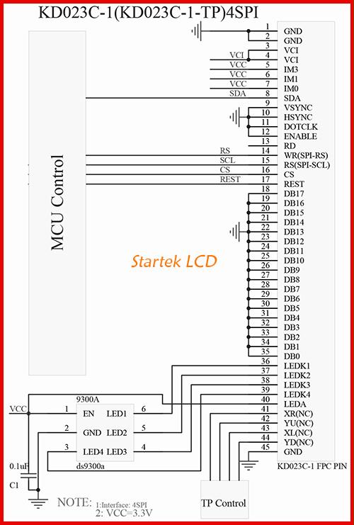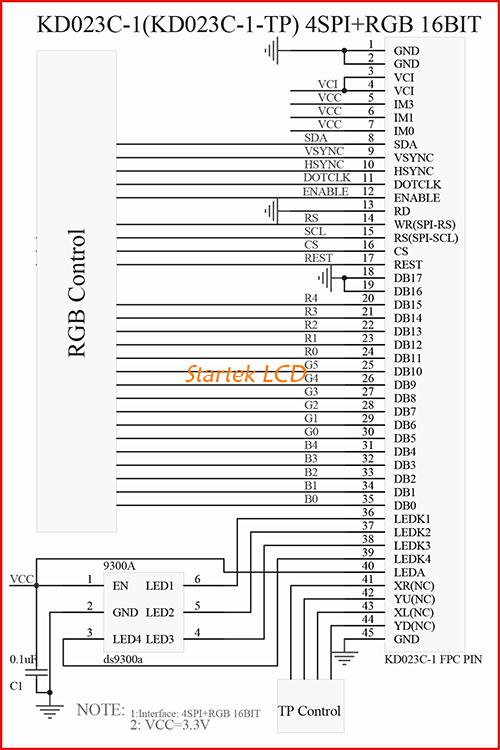 图片10:4线SPI16位RGB接口接线图