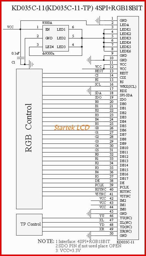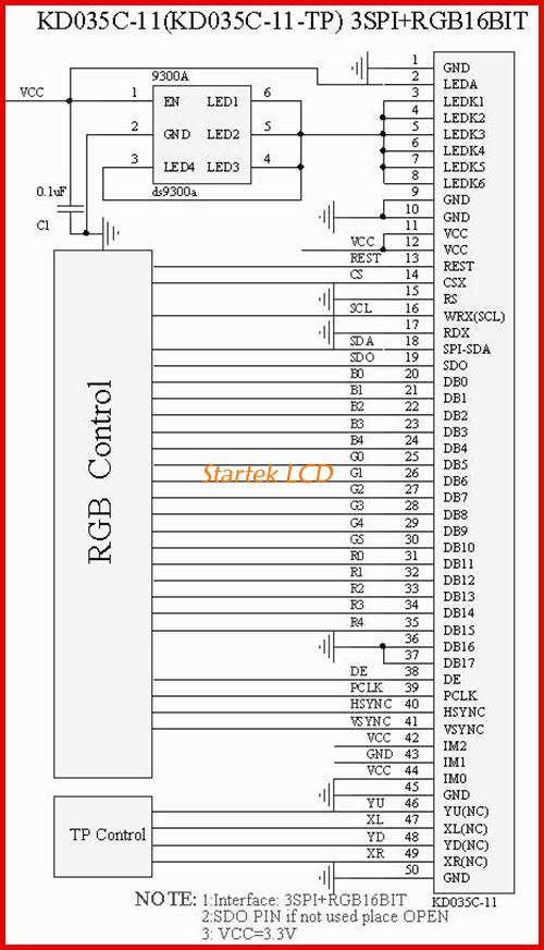 图片10:3线SPI+16位RGB接口接线图