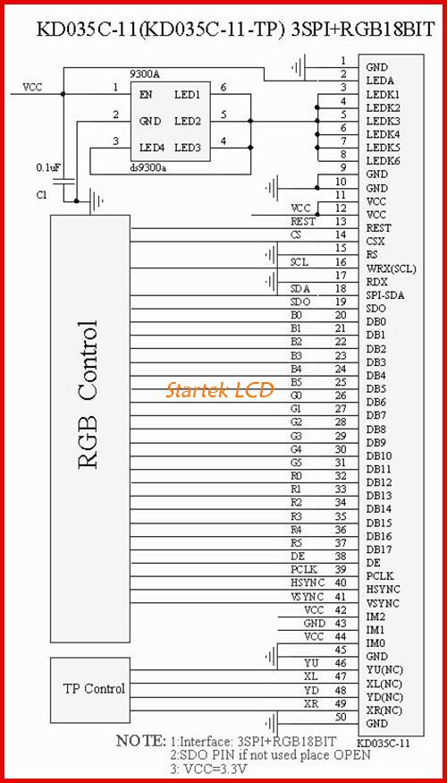 图片11:3线SPI+18位RGB接口接线图